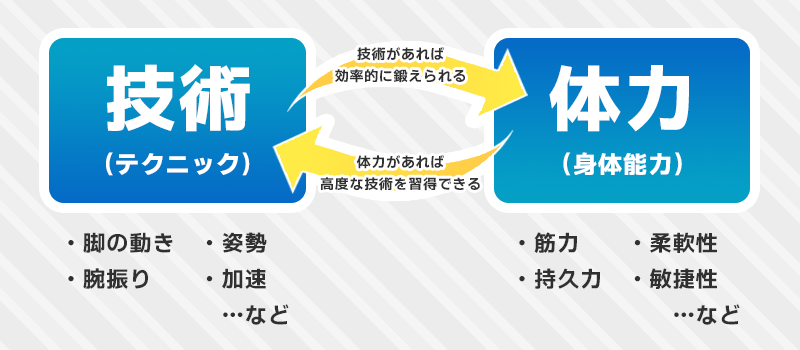「技術」と「体力」へバランスよくアプローチすることで効率的に速くなることを重要視しています。